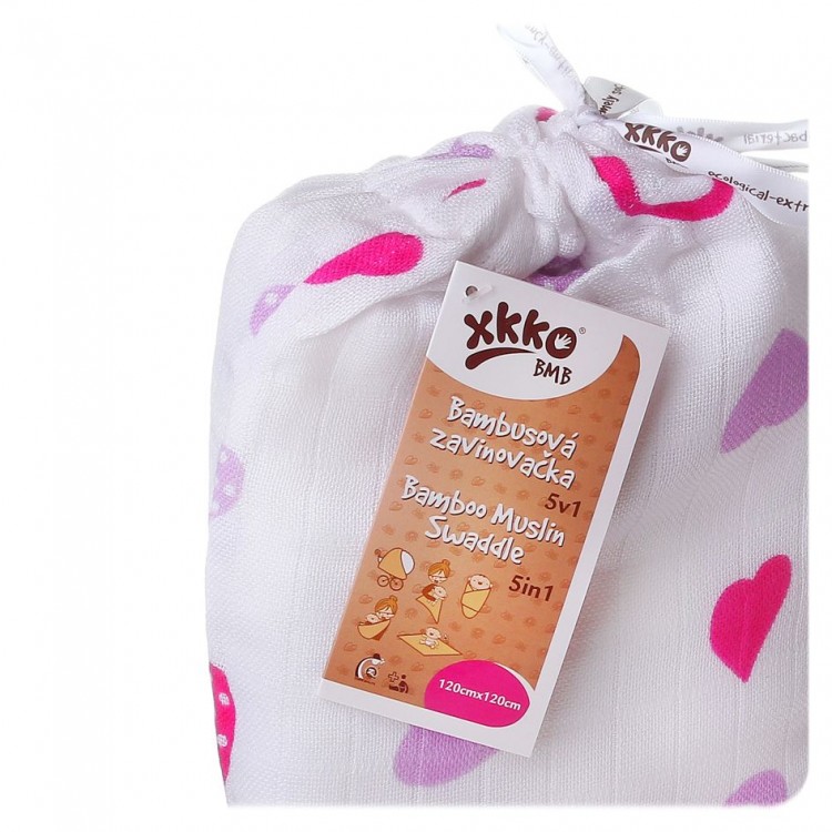 Bambusová zavinovačka XKKO BMB 120x120 Lilac Hearts - 1ks | |